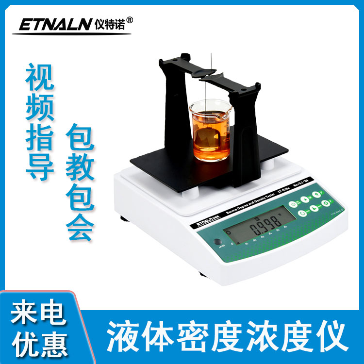 2、ET-02SA:濃度測量范圍:0.00~100.00%;濃度精度:0.01%;波美度精度:0.01°Bé;密度精度 0.0001 g/cm3。