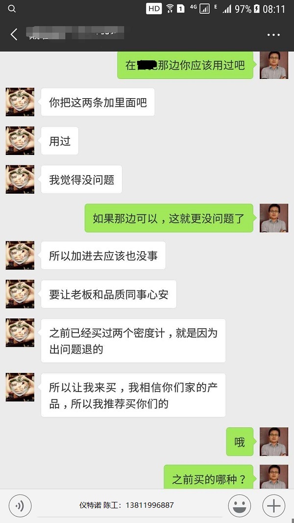 這位高精度密度儀ET-120S客戶,在采購儀特諾密度計之前,從別家采購過2臺密度儀,因為密度檢測質量達不到管控要求,密度精度達不到而退貨的,使用人員在上家單位用過儀特諾高精度密度儀ET-120S,故而選擇來與儀特諾合作。